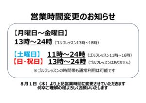 営業時間変更のお知らせです