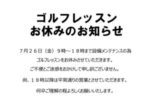 ゴルフレッスンお休みのお知らせです